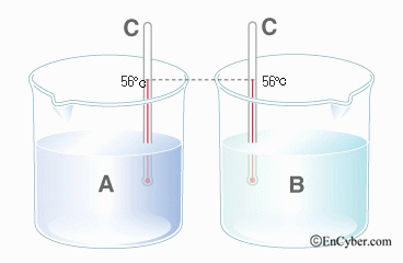 열역학 제0법칙은, 한 물체 A와 각각 열평형 상태에 있는 두 물체 B와 C는 서로 열평형 상태에 있다. 온도계(A)로 B와 C의 온도를 측정했는데 같았다면 B와 C는 열평형 상태라고 한다.