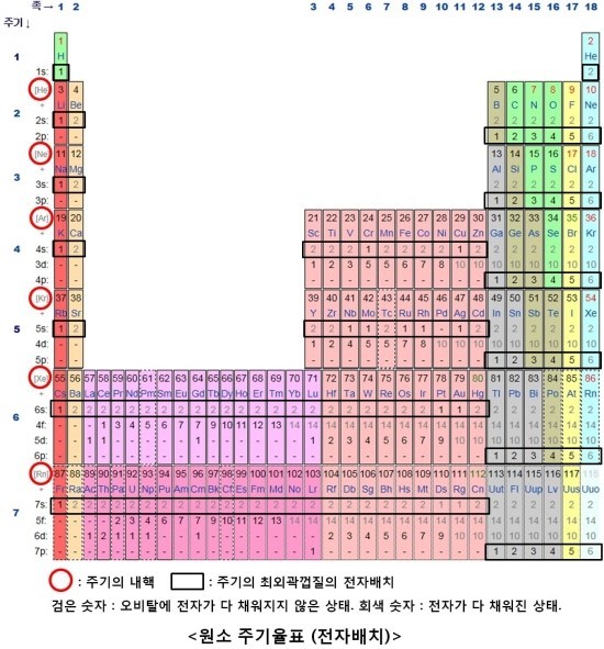 <그림출처 : 주기율표(전자배치) - 위키백과>