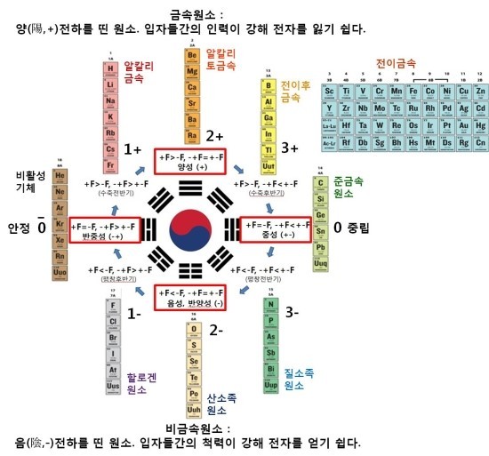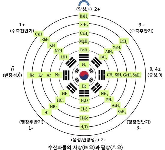 원소들이 옥텟규칙을 따른다면 그것은 사상(四象)과 팔상(八象) 체질을 따르는 것과 다름없습니다. 즉, 음(陰,-)과 양(陽,+)은 음양허실(陰陽虛實)에 따라 이를 체질로 구분한다는 사상체질(四象體質)의 원리입니다.