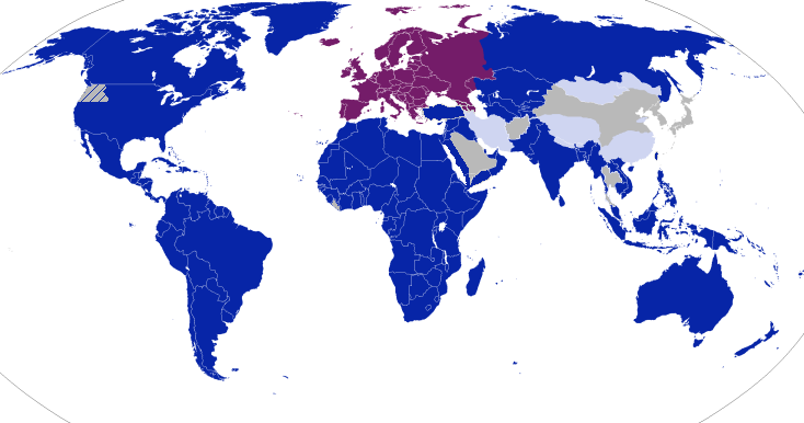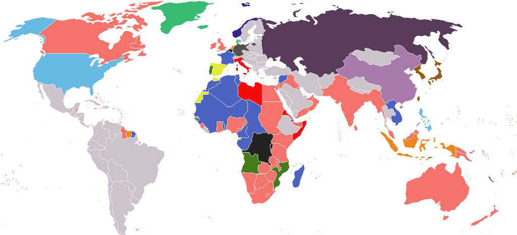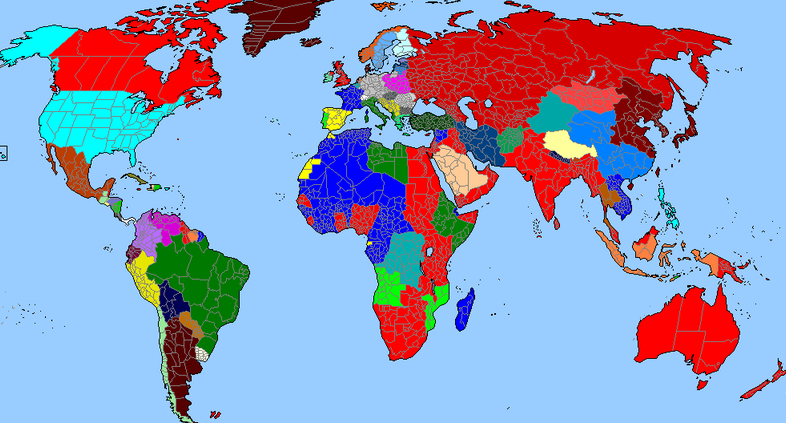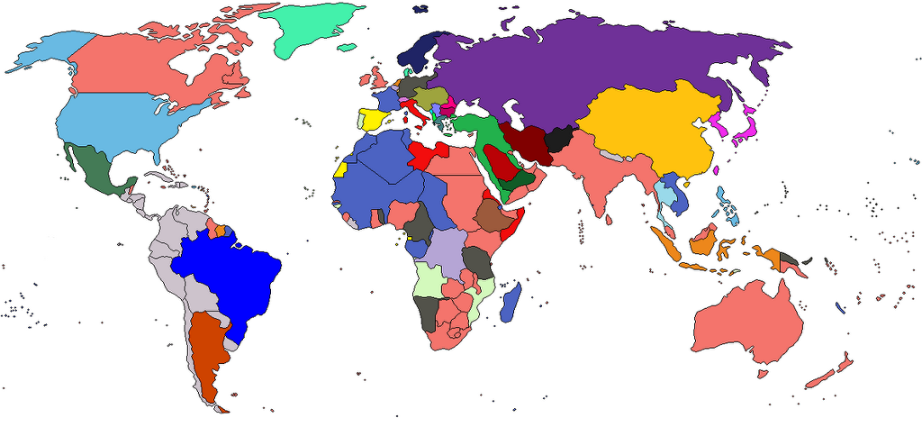 진한 빨강은 소비에트 빨강은 영국 파랑은 프랑스 하늘은 미국 살색은 네덜란드 회색 독일 정도가 되겠군요.