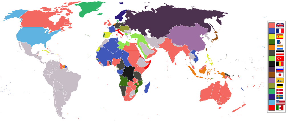 서양 문명권이 점유 했던 영토들 (파랑색) 반식민지 (하늘색)