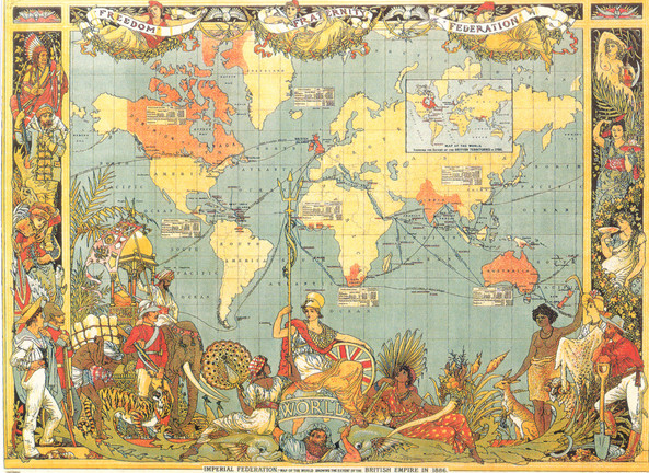 1886년 대영제국 지도입니다. ( 여기선 사람 안사는 명목적인 클레임지역 캐나다 호주 남아공 등 아예 전역을 색칠해놔서 오류가