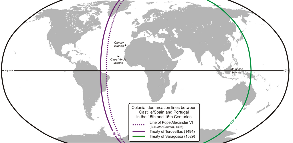 토르데시야스 조약으로 스페인과 포르투갈의 식민지 가르기 하는 시점이군요.