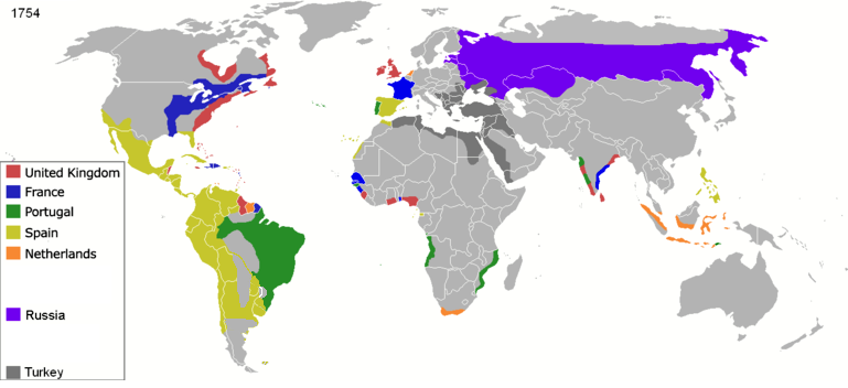 1754년 입니다 영국과 프랑스의 북미 쟁탈전이 볼만하군요... 그리고 네덜란드는 이미 인도네시아에 뿌리박은지가