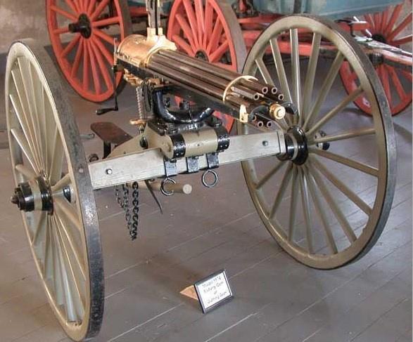 기관총까지 전투에 동원됐다. 반(半)자동식 개틀링 기관총은 남북전쟁 동안에 발전을 거듭, 1분에 무려 600발을 사격할 수 있는 가공할 화기로
