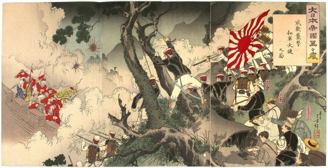 청일전쟁을 계기로 전성기를 맞았죠. 그 때문에 각종 전투 장면을 그린 작품이 많습니다. 오늘 살펴볼 미즈노 도시카타의 작품도 마찬가지입니다.