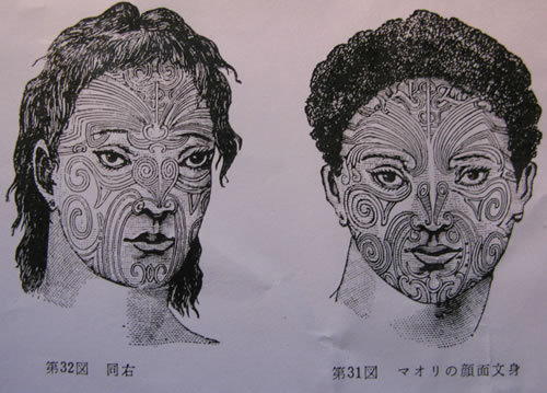 왜인의 직계조상 마오리족은 아직도 경면문신을 하고 있다.