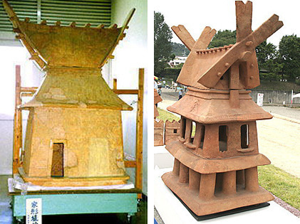 왜국의 고분시대(4~6세기)에 집중적으로 만들어진 토기. 이런 동남아풍 고상가옥들이 삼국시대 열도를 뒤덥고 있었다. 요즘은 일본의 신사에서나 간혹 볼수있는 지붕이다.