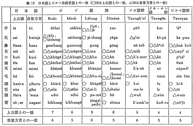 이러한 이유로 일본어의 신체어휘는 어느나라와 가장 비슷한가 연구가 시작되었다. 고대의 일본어 어형들은 지금까지 상황으로 동남아 언어들과 잘 일치하기로 정평이 나있다.