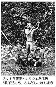 인도네시아 수마트라섬 믄타와이제도의 원주민이 사용하는 상하 비대칭인 활