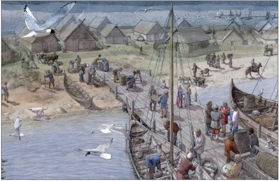 첫 번째 변화의 조짐은 농업 생산력과 인구 증가의 조짐이 보이기 시작하는 7세기에 나타났다. 이 시기에 프랑크인들은 도버 해협으로 나갈 수 있는 두 개의 항구, 캉토빅과 도러스타트를 개발한다. 8세기에는 해협 맞은편에서 이와 대응할 만한 정착지가 개발되기 시작했다. 대표적인 곳이 함윅(현재의 사우스햄튼. 지금도 영국을 대표하는 항구로 기능하고 있다.), 런덴위치(로마 시대 런던의 바로 옆에 위치), 입스위치 등이었다. 고고학자들은 이 시기 국제 교역의 거점이 된 이들 항만 정착지들을 '엠포리아(emporia)'라고 부르고 있다.