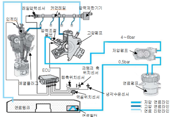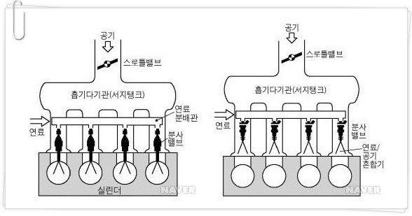 휘발유는 간접, 디젤은 직접분사