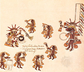 이처럼 '역사상 유례를 찾을 수 없는 인간 도살'이었던 인신공양은 대규모의 제사의식을 통해 거행되었다. 제사의식이 진행될 때 사제들과 희생자들은 신의 형상을 하고 등장했다. 이는 신과 인간이 한 몸에 결합됨으로써 제사의식을 지켜보고 있는 군중 앞에 신적 권능을 구체적으로 보여주기 위함이었다.