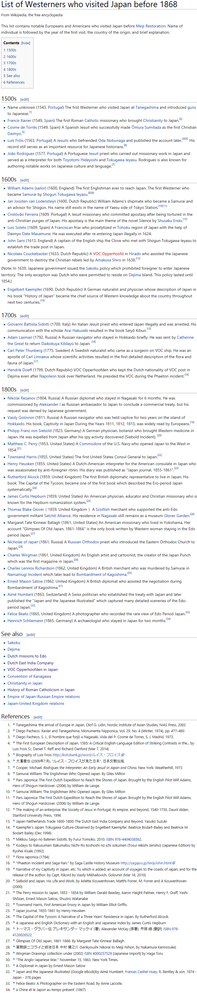 [스크랩] `메이지유신(1868년) 이전에 일본을 방문한 서양인 일람` 작성자마이피|작성시간14.10.21|조회수110 목록 댓글 0 글자크기 작게가 글자크기 크게가 https://en.wikipedia.org/wiki/List_of_Westerners_who_visited_Japan_before_1868 다음검색 스크랩 원문 : 임진왜란을 연구하는 모임. 현재 게시글 추가 기능 열기 북마크 공유하기 신고 센터로 신고 댓글 댓글 0 댓글쓰기 답글쓰기 댓글 리스트