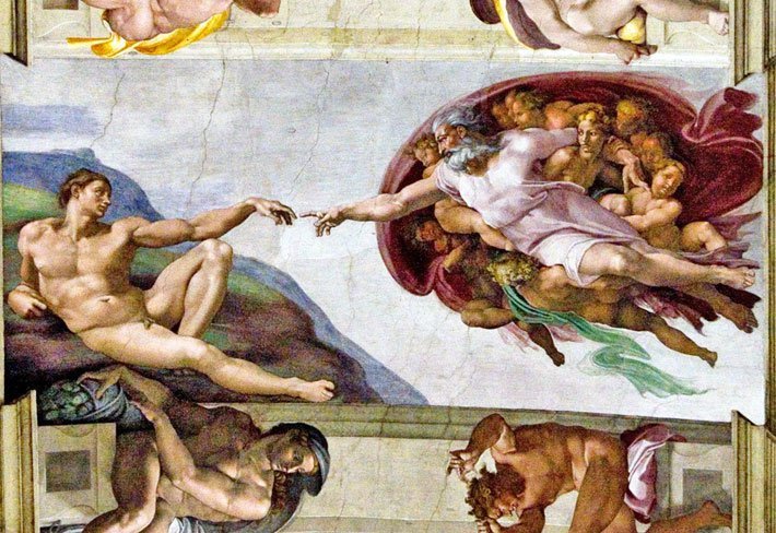 사람들은 전재는 절대 실수하지 않는다고 믿는다. 그래서 그들의 가능성과 오류가 고의적이라고 생각한다. 하지만 젊은 미켈란젤로의 흔들렸던 자신감은 프레스코화 작업을 하며 회복됐다. 1508년 시스틴 성당의 천장화가 그 시작이다. 그가 천장화 작업을 끝마쳤을 때, 그는 지난 1500년간 가장 중요한 상징적 이미지 중 하나를 구현해냈다. 아담을 창조한 신이 바로 그것이다.