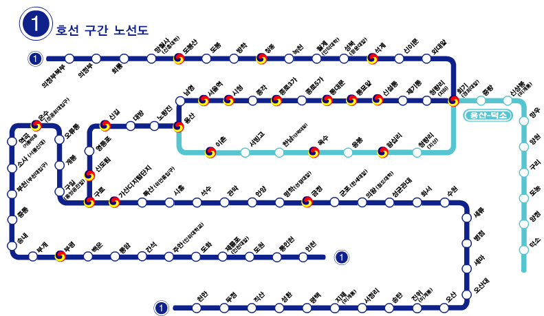 용의 형상을 하고 있는 산이름을 본따서 용산역이라 명명함.