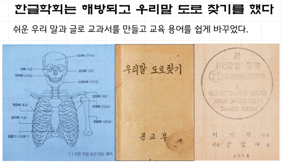 우리는 세종대왕께서 만들어주신 우리 한글로 우리말을 적는 말글살이를 하는 나라를 만들어 우리나라를 살리고 빛내려고 1908년에 국어연구학회(한글학회)를 만들었다. 그러나 우리 뜻을 이루기 전에 일본에 나라를 빼앗겼다. 그래도 주시경 스승과 그 제자들은 한말글을 갈고 닦으며 많은 사람들에게 알리고 쓰게 했다. 그리고 일본에 나라를 빼앗겼을 때에도 주시경의 제자들이 목숨을 바치며 한말글을 지키고 맞춤법과 말광을 만들어 해방 뒤부터 우리 말글로 배움 책도 만들고 공문서도 쓸 수 있게 했다. 또한 우리말 도로 찾아 쓰고 우리말글로 말글살이를 할 수 있는 나라를 만들려고 애썼다. 그런데 일본 식민지 국민 교육을 착실하게 받은 자들이 일본 한자말을 일본처럼 한자로 적는 말글살이를 하자며 한글을 못살게 굴었다.