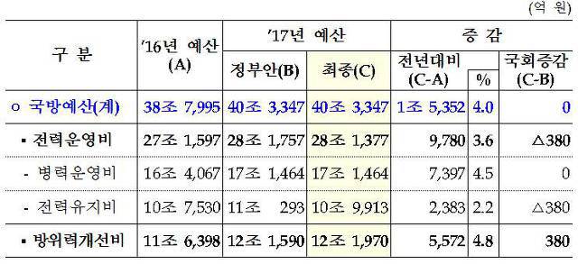 북한 국방비의 31배 이상을 군사증강에 매년 투자하고 있으며