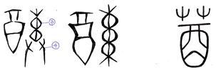 酋가‘우두머리’의 뜻을 가지는 것은 酉의‘깃[닭]’에서 八로 구분하여, ‘볏’에서‘우두머리’의 뜻으로 가차시킨 것입니다.