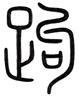 跔는 足과 句의 합자이며, ‘꾸부정한 발’이라는 것에서‘곱다(/곧지 아니하고 한쪽으로 약간 급하게 휘다)’의 소릿값을 나타냅니다.