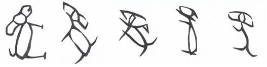 兔의 갑골문은 주둥이와 귀가 강조된 형태로 토끼의 모양을 본뜬 글자이며, 이로부터‘토끼’의 뜻을 나타냅니다.