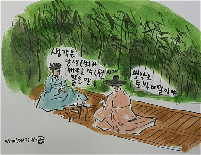 우리말의 깊고 그윽한 속내를 잘 모르던 시절, 한자와 한문에 얼까지 빼앗긴 사람들이 더러 ‘생각’을 한자말이라고 했던 적이 있었다. ‘날 생(生)’ 자와 ‘깨달을 각(覺)’ 자로 ‘생각(生覺)’이라고 어림없이 적어서 착한 사람들을 속였던 셈이다. 아직도 그런 시절에 학교를 다닌 사람들은 ‘생각’을 한자말로 알고 있을지도 모르지만, 그것은 사실이 아니고 ‘생각’은 본디부터 우리 토박이말이었다.