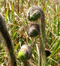 1) '고비'의 어원 추정은 이렇습니다. 어린 '고비'는 옆 사진에서 보는 것처럼 '고부라진 모양'을 가지고 있으므로 그 형태에 근거하여 '곱(형용사 '곱다/굽다', 곡, 曲)+이(명사파생접미사)'로 분석할 수 있습니다. 그래서 그 의미는 '구부러진 것'이라고 볼 수 있습니다.