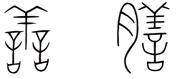 善의 금문 자형은 羊과 2개의 言과의 합이며, 전문 자형은 言이 1개인 자형도 있으며, 2개인 자형도 있습니다. 言이 자형의 요소로 사용될 경우 심리적인 상태나 상황이 겉으로 드러남을 의미하지만, 여기서는 구분자로 갑골문의 臣과 금문과 전문의 言이 같은 역할을 합니다.