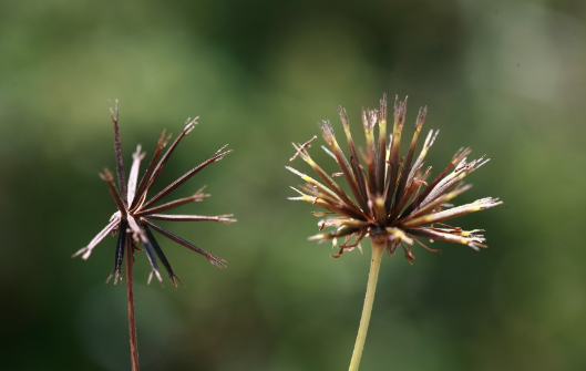 앞에 말한 갓털이란 씨앗 맨 끝자락에 붙은 솜털 같은 것으로 민들레씨앗에 붙은 하얀 보드란 털이 대표적이다. 그리고 새의 머리에 길고 더부룩하게 난 털도 갓털 또는 도가머리라고 한다. 아무튼 식물들도 후손을 멀리 퍼뜨리려고 별의 별 수단을 다 쓴다. 갓털 하나만해도 민들레나 버들강아지는 씨앗 끝자락에 가벼운 솜털을, 도깨비바늘이나 도꼬마리는 썩 잘 달라붙는 바늘가시로 바뀌었다.