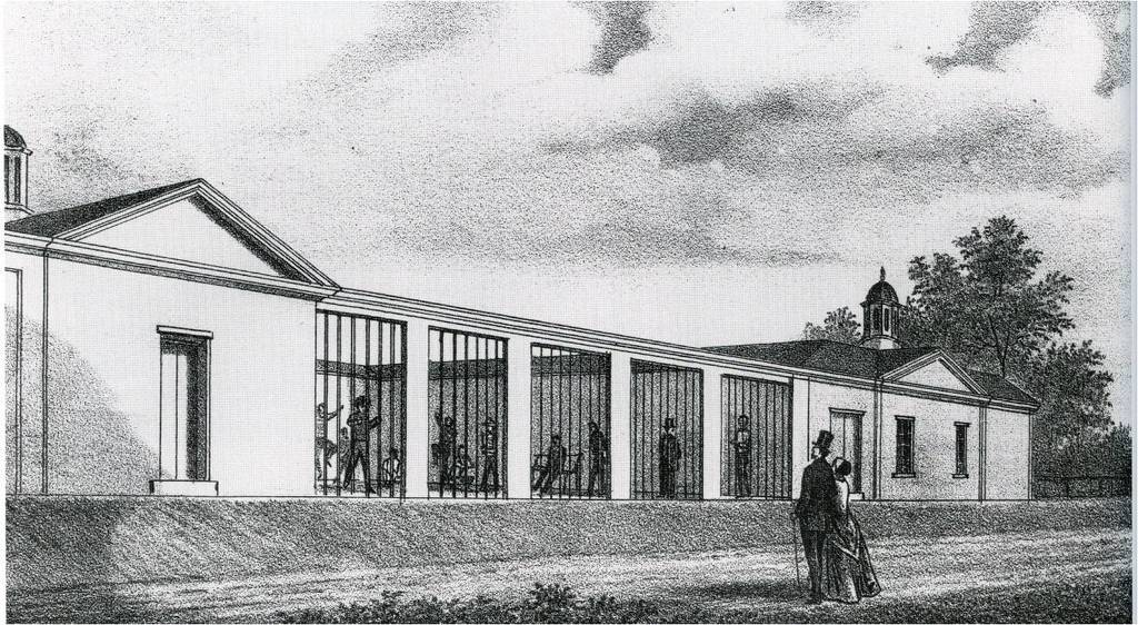근대 초기 광인 수용소는 시체공시소인 모르그와 더불어 당시 대중들의 오락거리 중 하나였다. 그림은 19세기 미국 펜셀베이니아 정신병원의 모습이다.(뉴욕 학술원 의학도서관 소장)