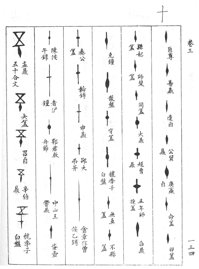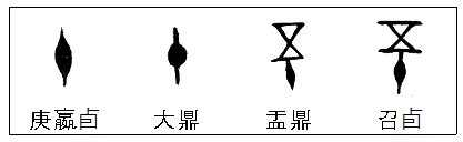 目 밑의 '가운데에 점이 찍힌 수직선(|)'이 '十(열 십)'의 고자라는 증거자료는 아래와 같다. 다음은 중화서국 '金文편'에 실린 十(열 십)의 금문자형 자료이다.