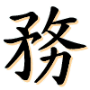 ☞ 務무: 힘쓰다 → 힘써 일하다 → 일