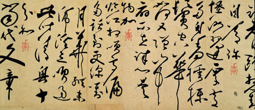 ▣ 광초(狂草) : 마치 미친 듯이 거의 끊어짐 없이 글자들까지 이어서 쓰는 형식의 광초(狂草)는 당(唐)나라 때 벌써 예술적 경지로 발전합니다..
