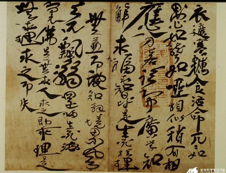 몇십 번의 필획으로 사각형 네모꼴의 규격에 맞춰 정성을 들여야 하는 기존의 예서체(隸書體)나 해서체(楷書體)의 어려움을 극복한 초서(草書)는 효율적이고 신속한 필기 형태로 인해 다양하게 발전합니다. 그러나 그 취지가 너무 강조된 나머지 지나치게 간략화 해 현대까지 예술적 대상으로 다양하게 발전하였지만, 실용적 가치를 다소 잃어버리는 결과를 초래합니다. 결국 일반인들의 속성(速成) 필기체의 주축을 행서체(行書體)로 옮겨가게 합니다.
