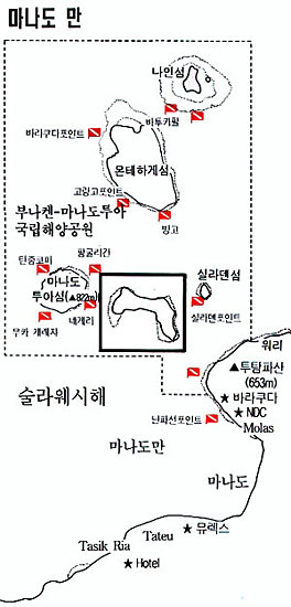 ▲ <지도3> 마나도 만과 Siladen 섬