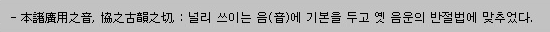 동국정운의 서문내용과 실제 동국정운식 한자음 표기와 반절음을 서로 비교함으로써 위 구절이 사실임을 확인하였습니다.