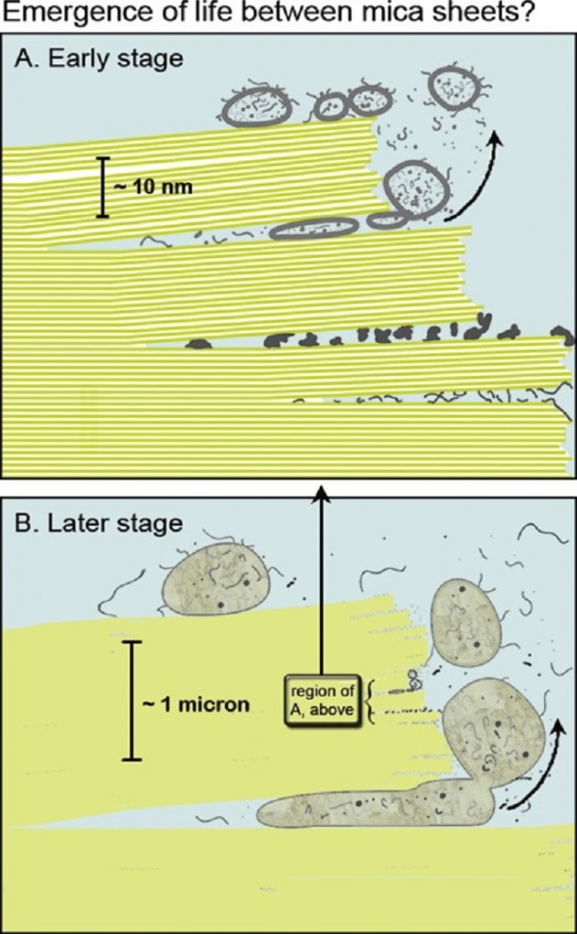 단백질과 RNA 그리고 DNA가 생겨났다고 해도 이들은 아직 생명이라고 부를 수 없다. 이들이 생명체로 기능하기 위해서는 외부 환경으로부터 보호받을 수 있는 특별한 장치(예를 들면, 생물체의 막)가 필요하다. 유기물질을 모으고, 이들을 생물체의 막으로 감싸기 위해서는 촉매가 필요했을 텐데, 점토나 광물알갱이가 그러한 기능을 담당했다는 주장이 있다.