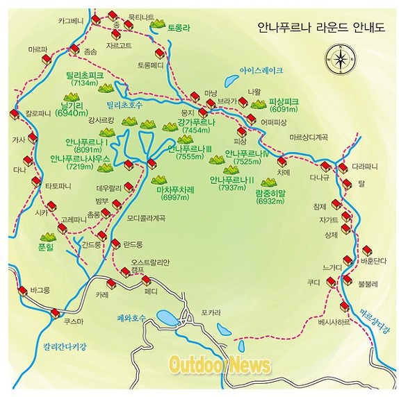 안나푸르나, 우리가 알고 있는 네팔의 봉우리 명칭이 우리말에 근거한다는 사실이 놀랍다. 그리고 안나푸르나 제2봉 우측에 있는 강가 푸르나(7,455 m)는 산스크리트어로서 우리말인 것으로 보인다. 기회가 되면 연구해볼까 하는데 일단 "강까 뿌러나" 읽으면 답이 되지 않을까 한다.