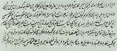 그리고 당시 인도의 이슬람화도 국경을 맞대고 있던 차가타이의 이슬람화에 영향을 조금이라도 끼치지 않았나 생각이 된다. 여기에 더욱 결정적인 증거가 바로 '차가타이 투르크어'가 되지 않을까 한다. 즉, 차가타이어가 따로 있다는 것이다. 그런데 그 모양이 아랍, 페르시아문을 보는 것처럼 생겼다. 아래 그림이 차가타이 문으로 기록된 문헌인데, 언뜻 보아도 위에 보이는 현대 위구르문 혹은 아랍, 페르시아문과 비슷해 보이는 것이 확인된다.