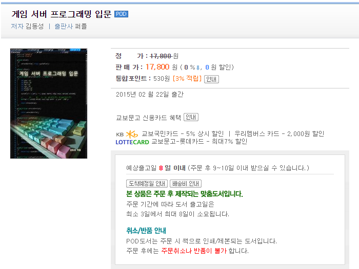 이번에 오랫만에 방문해서 인사를 드리는 것은 제가 "게임 서버 프로그래밍 입문"이란 책을 출판 했습니다.