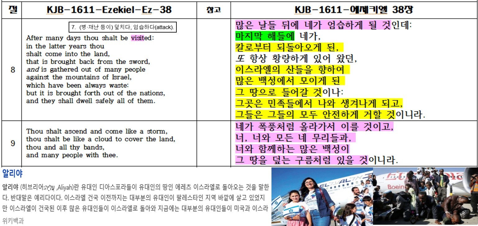위에 말씀에서 그 땅으로 들어가는 백성은 바로 '알리야'이며,