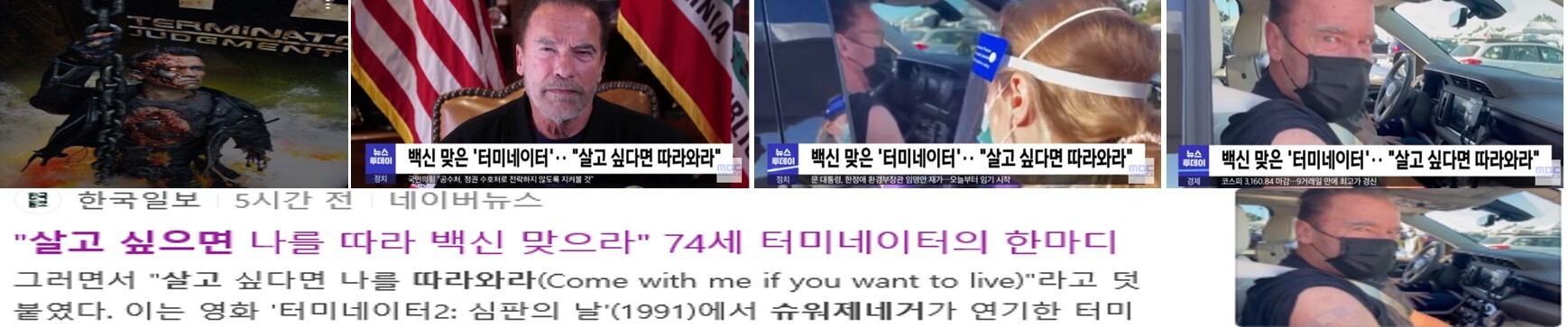 2021년 1월 21일 그 영화의 주인공 아놀드 슈어제네거는 21일 백신을 맞으면서,
