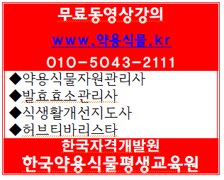 한국자격개발원에서 2019년도 9월22일 시행하는 약용식물자원관리사, 발효효소관리사, 식생활개선지도사,허브티바리스타 자격검정시험 동영상 강의를 무료로 수업받으세요