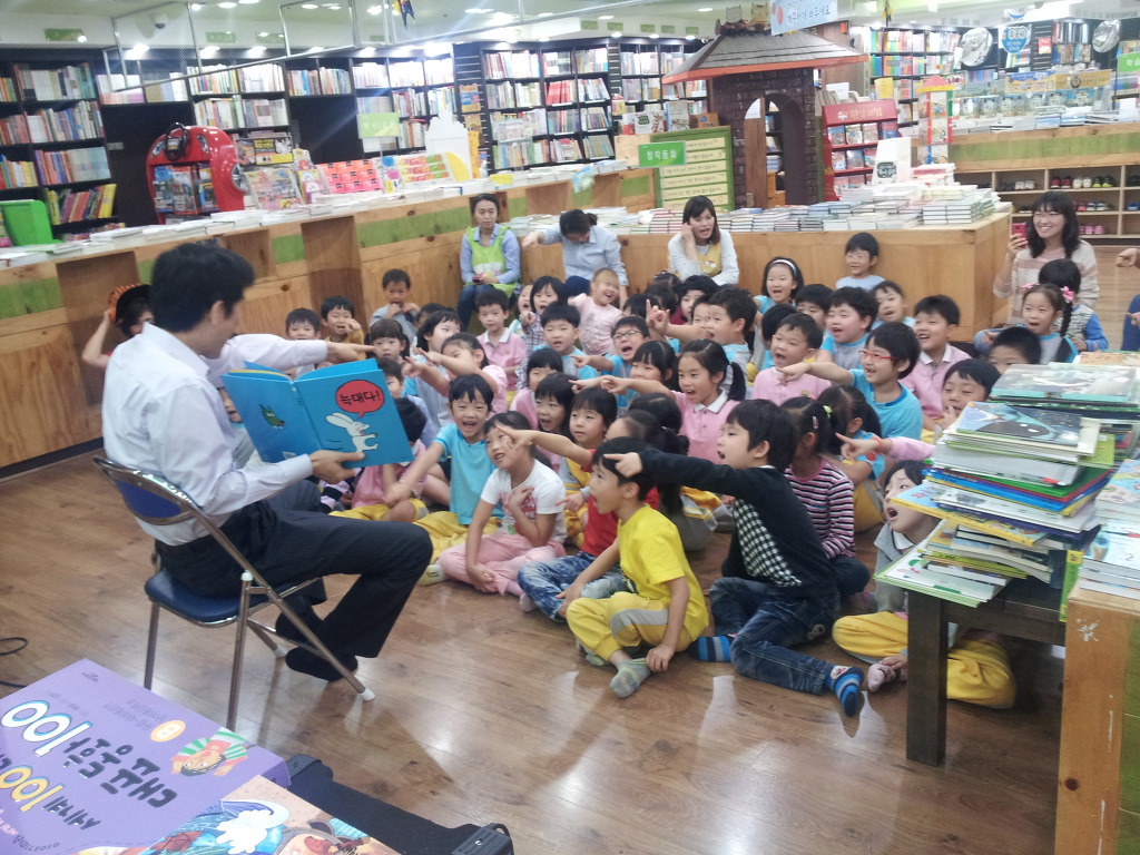 매장 한 바퀴를 빙돌며 안내를 하더니 외국어 코너로 와서 영어동화책 원본을 치켜들고 안내하는군요^^