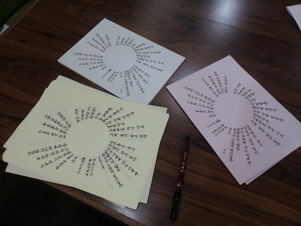 견학오는 모들 아이들에게 김춘수 시인의 시 "꽃"을 써서 그 속에 한 명씩 모두 이름을 써줍니다