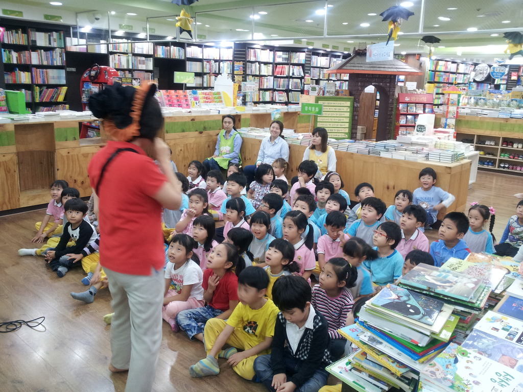 매장 한 바퀴를 모두 안내 받은 아이들이 이젠 어린이코너에 앉자 즐겁게 프로그램을 진행해줍니다^^
