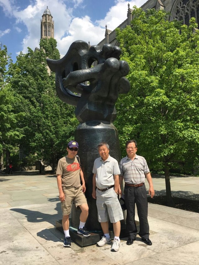 강연 참석 전 프린스턴 대학 캠퍼스에서 / 왼쪽부터 유영수, 한영섭, 유신희