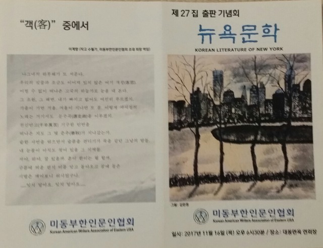 제27호 '뉴욕문학' 발간을 진심으로 축하드립니다.