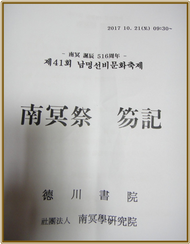 남명선생의 학덕을 기리는 마음으로 제례에 임해주시면 감사하겠습니다.