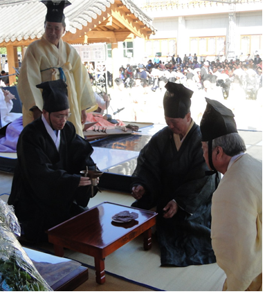 0 초헌관은 잔을 받아 맛보고 상(床)에 올리시오
